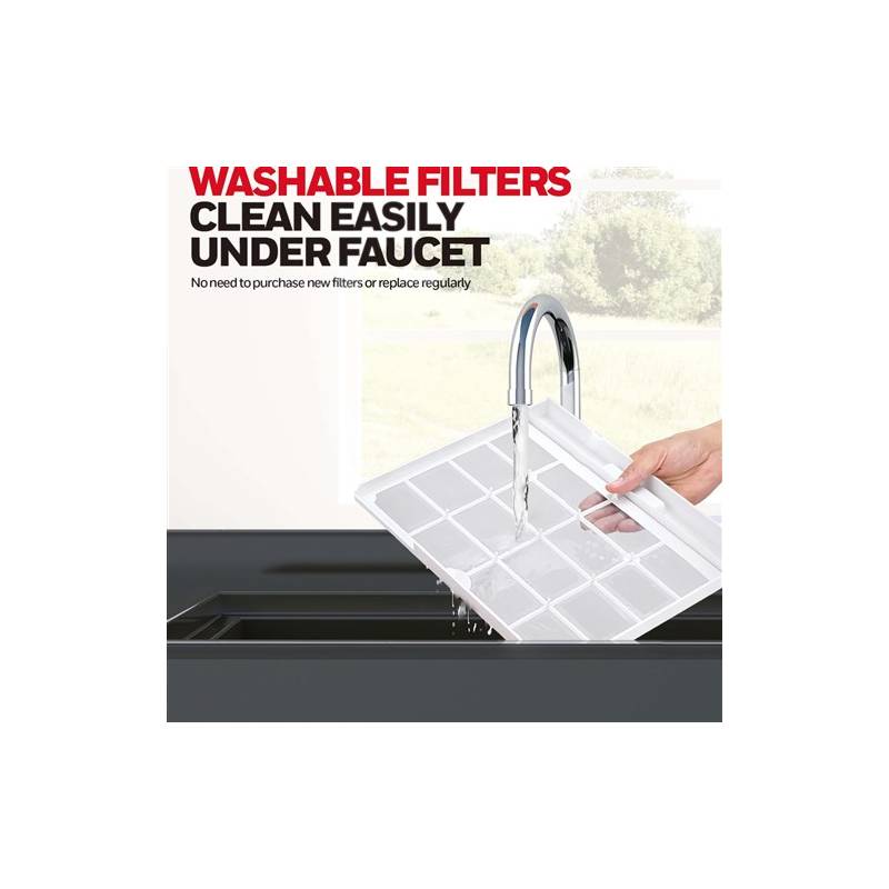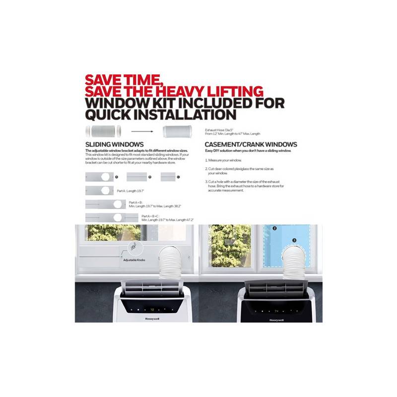- Easy-to-install window venting kit with adjustable window bracket, drain pan, and insulation tape included.