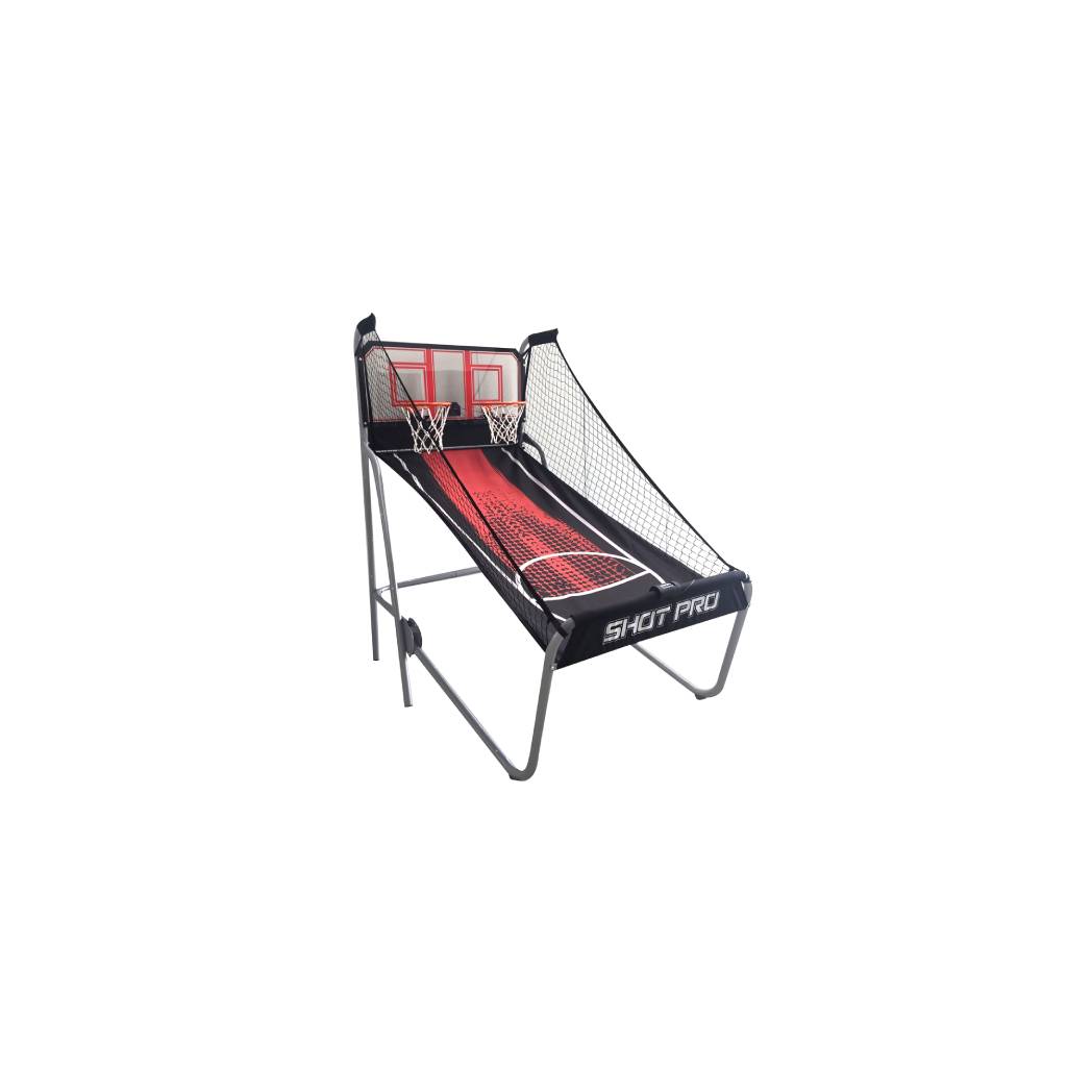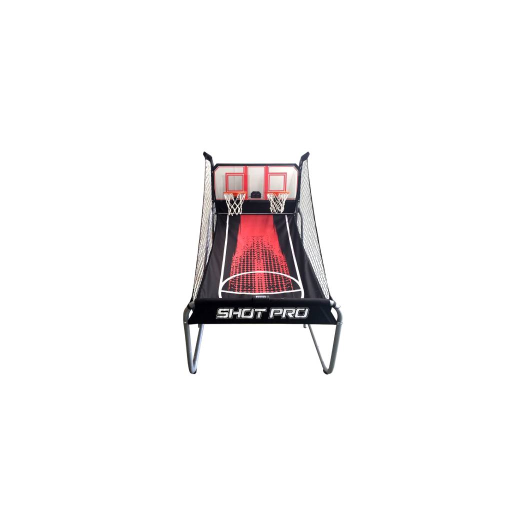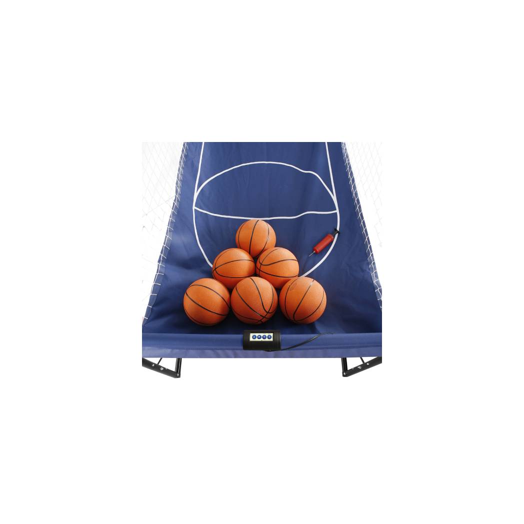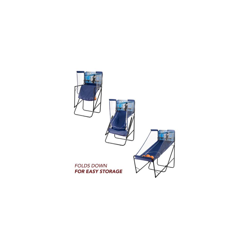 Beat the competition in the comfort of your own home with the quality Hoops Dual Electronic Basketball game. Unlike other basketball games, this game is built to last with a rugged powder coated steel frame and a solid wooden backboard. The infrared electronic scoring above each hoop ensures accuracy while an electronic timer counts down the time. This Hathaway basketball game will provide hours of fun for the whole family.