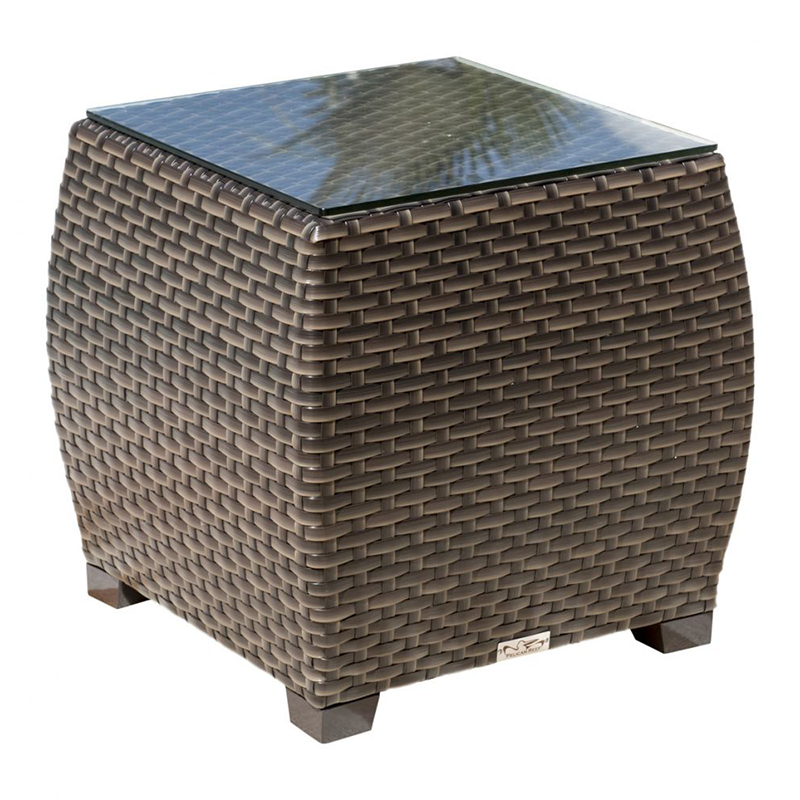 The Fiji Collection is an upscale large profile seating group with a HDPE woven fiber that has a unique texture. It’s end tables are hospitality quality with a hefty built design that is tough and robust. Use with coordinating seating pieces to complete the set.
