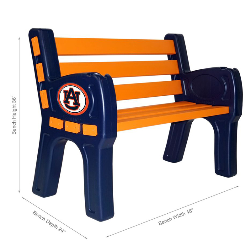 Support your favorite NFL team on your patio or in your yard with the NFL Officially Licensed Park Bench. Backs and seat are constructed of pine and covered with plastic sleeves for extra durability. The bench uses the primary and secondary colors of your favorite team. Made in the USA and ships from Iowa. 600 pound weight limit. Assembled dimensions: 48”L x 24”W x 36”H. 3 days lead time to ship.