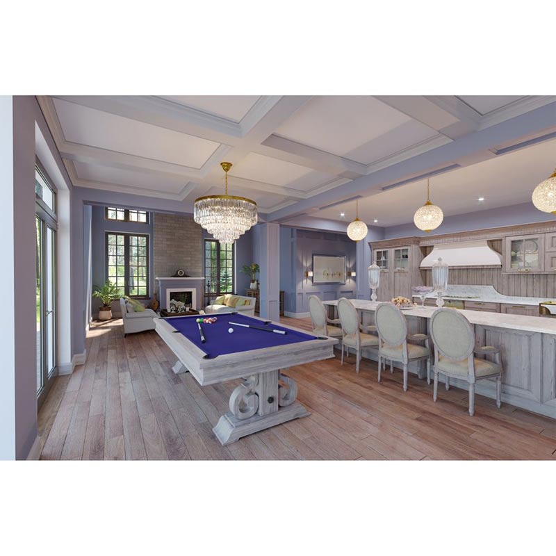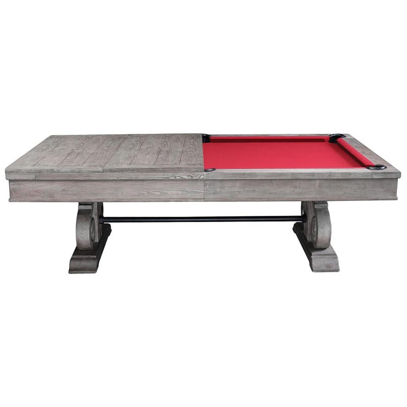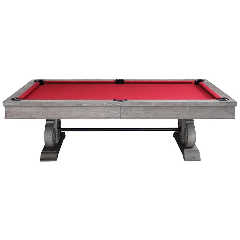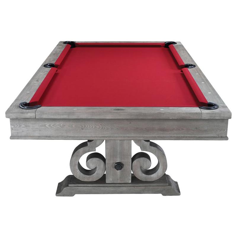 The Barnstable has a classic design with a rustic finish. The beautiful pedestal leg design enhances the tables’ elegance while the iron bar crossbeam provides added stability. The table has a textured grain that adds a rustic element that compliments many design styles. This table also comes with a dining top that can convert the table from a place to play to a place to dine. All Imperial pool tables are skillfully crafted and designed by billiard experts and enthusiasts.