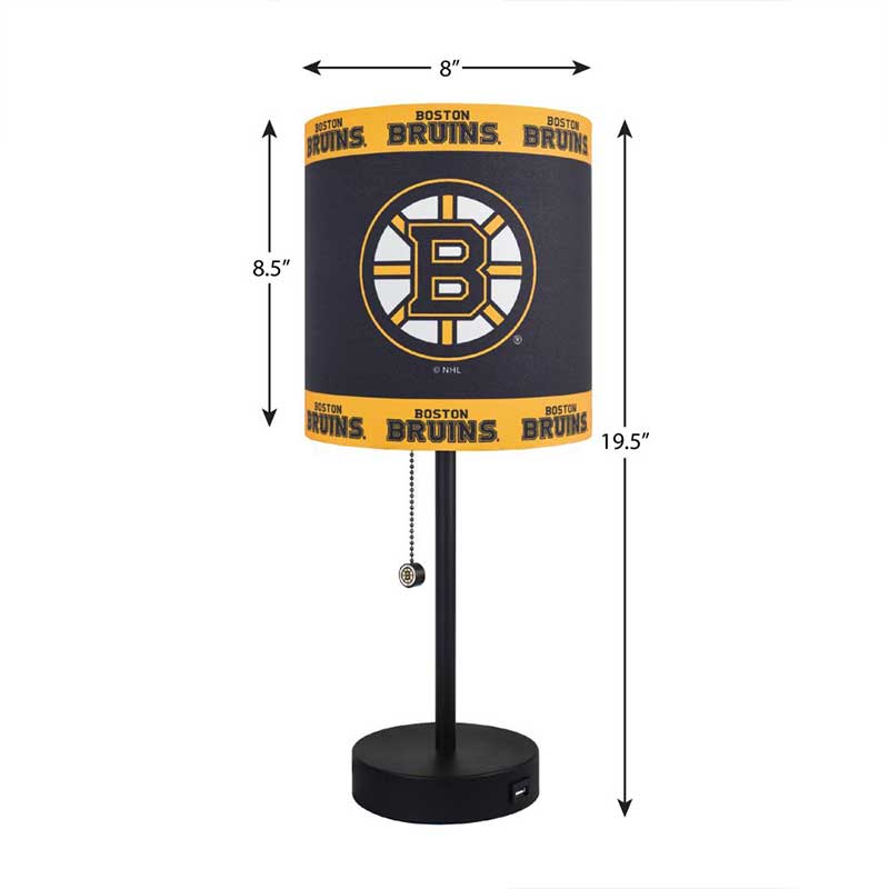 Brighten up your desk, side table, nightstand, you name it, this Boston Bruins lamp with USB docking station is sure to fit in. Pull chain switch with Packers logo offers an easy on and off function. Charge up your phone or tablet close by to where you are reading or working with the built in charging station.