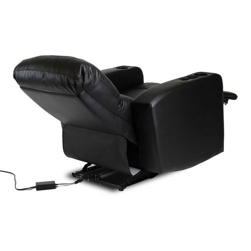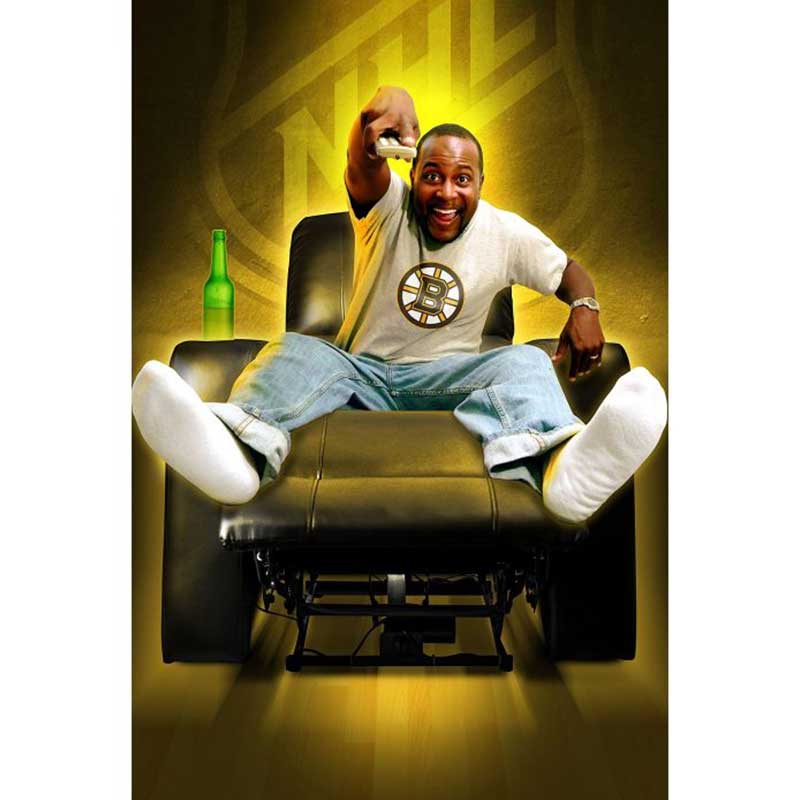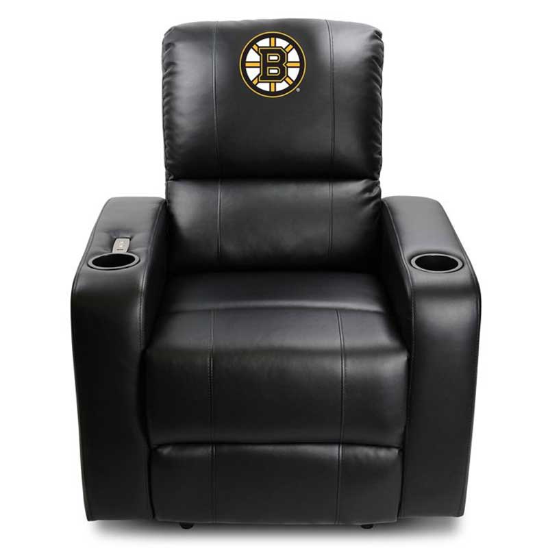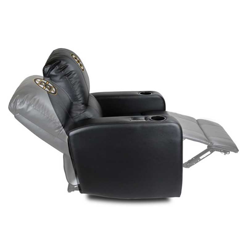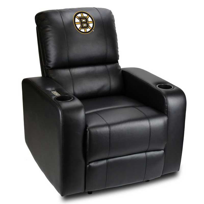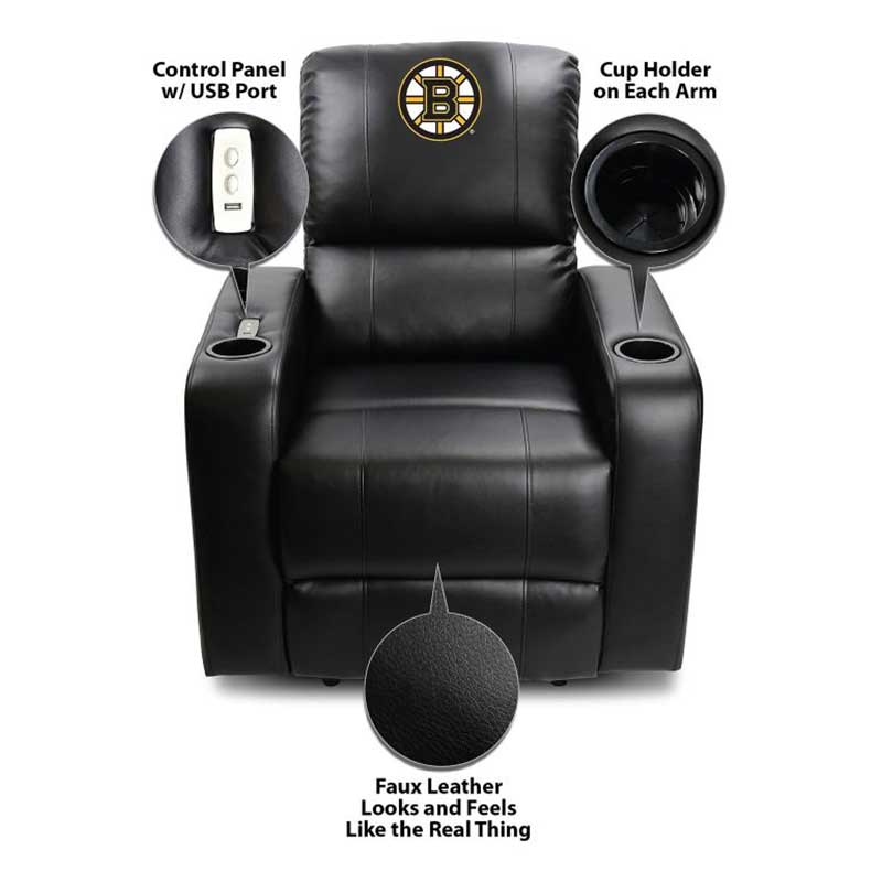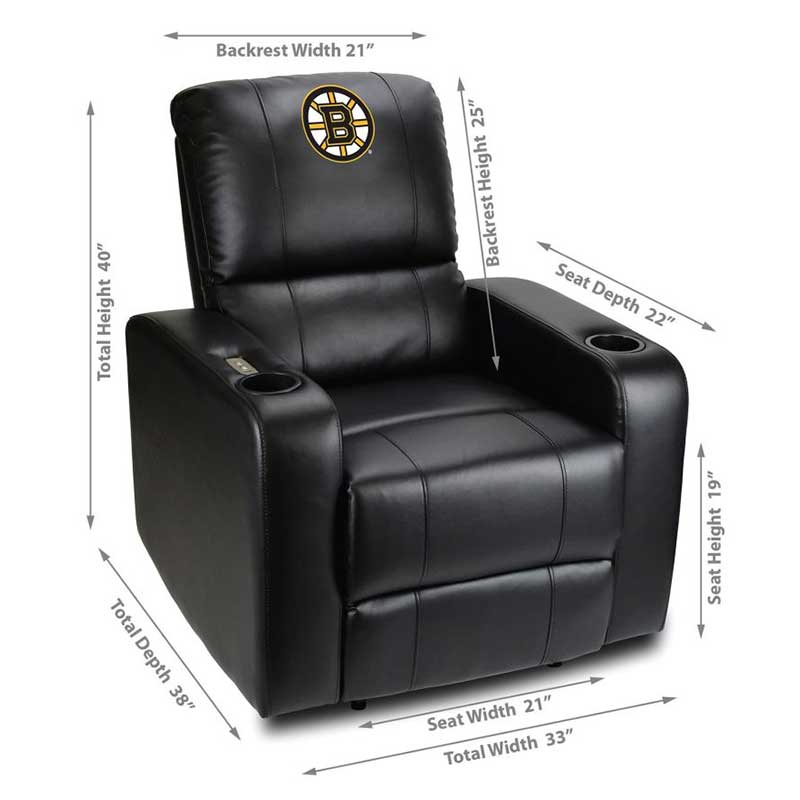Watch your favorite team or play your favorite games while enjoying this comfortable power theater recliner. Officially Licensed by NHL, the chair is made with premium faux leather and has pocket spring coil seating for extra comfort. Team logo is embroidered on the headrest. The chair is decked out with a smooth power mechanism, a USB charging station, and cup holders in both arms. Ships LTL. 3 units per pallet. Chair dimensions: 33.5” x 38” x 40”. Weight capacity 250 pounds.