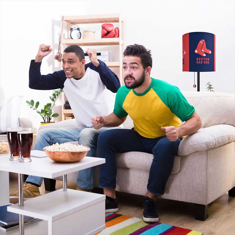 - Lampshade has vibrant Red Sox logo with unique design