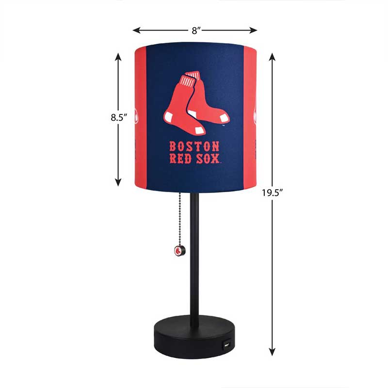 Brighten up your desk, side table, nightstand, you name it, this Boston Red Sox lamp with USB docking station is sure to fit in. Pull chain switch with Red Sox logo offers an easy on and off function. Charge up your phone or tablet close by to where you are reading or working with the built in charging station.