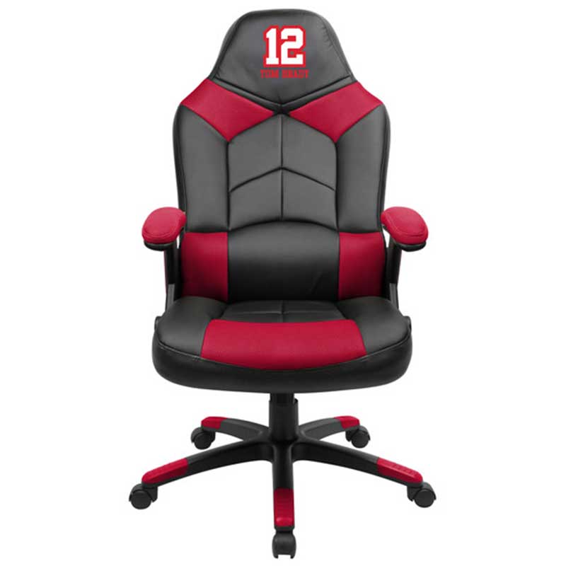 Support your favorite team while playing your favorite online game, listening to your favorite music, or just watching TV in your Officially Licensed Tom Brady Oversized Game Chair! This chair has an oversized seat and back for extra comfort. Embroidered team logo on the headrest. Memory foam in the seat and padded armrests make this the one of most comfortable gaming chair you can buy. Unique pouch allows you to keep gaming accessories handy and protected. 13-25/32″ black powder coated nylon base and butterfly tilt mechanism. 325 pound weight capacity.