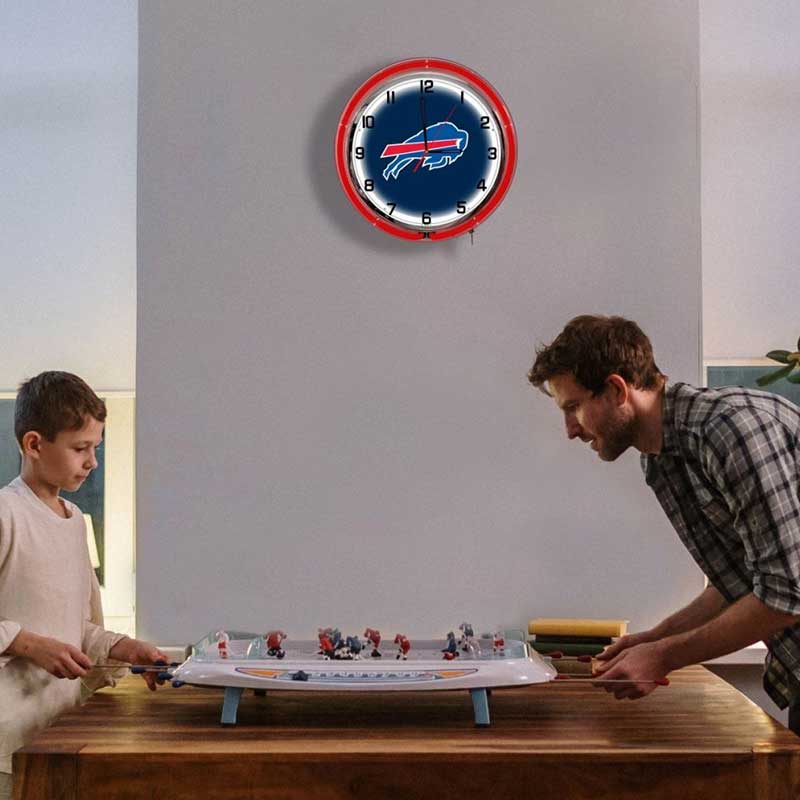 - Neon Lighting: Features vibrant red, white, and blue neon lights surrounding the Bills logo for a bold and eye-catching display.