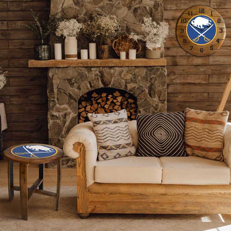 Imperial Buffalo Sabers Oak Barrel Clock Features: