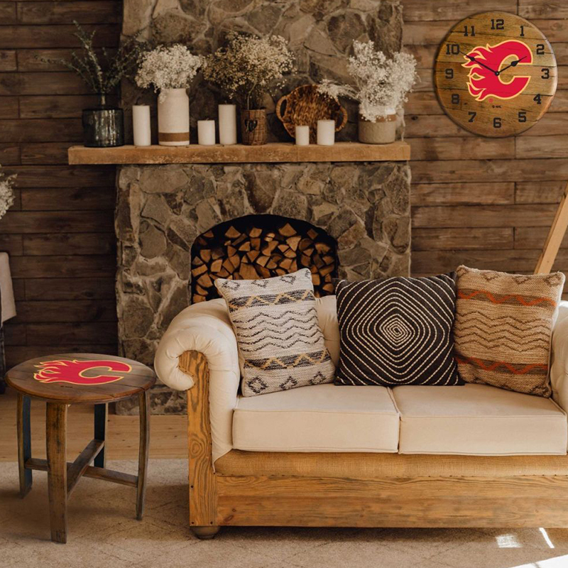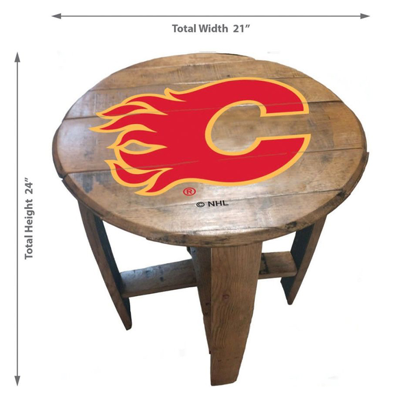 - Spruce up your living room or fan cave with this officially licensed Calgary Flames custom made Oak Barrel Table from Imperial!