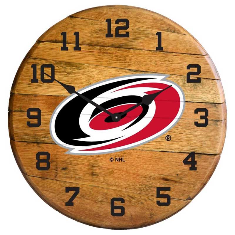 Imperial Carolina Hurricanes Oak Barrel Clock Features:
