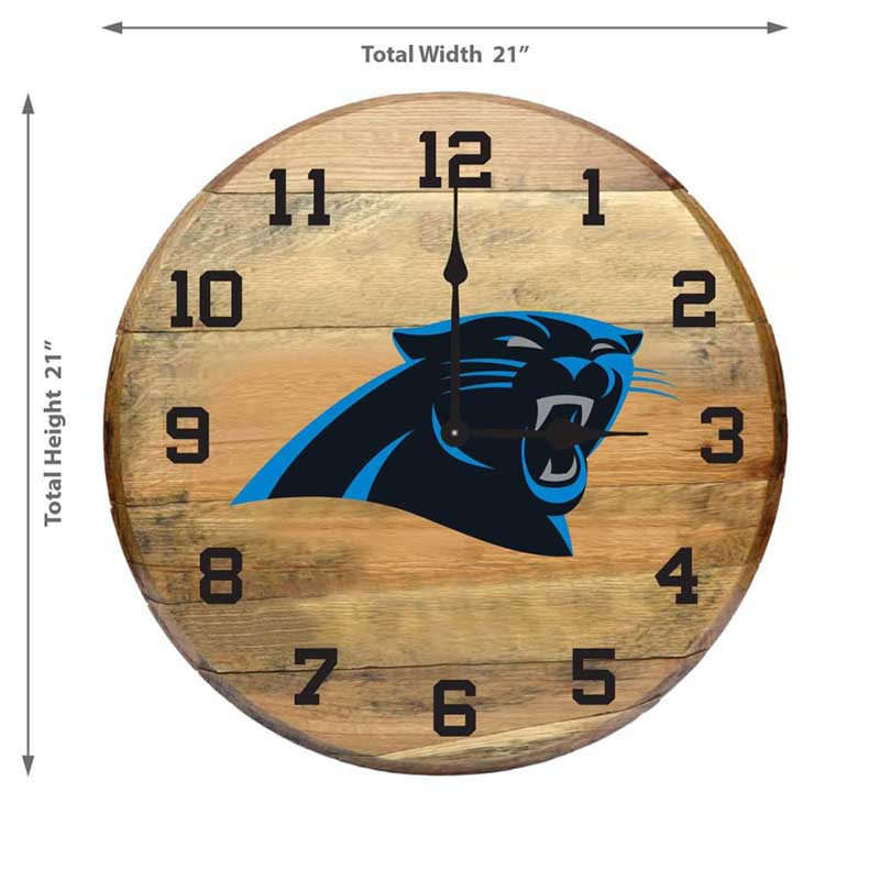Imperial Carolina Panthers Oak Barrel Clock Features: