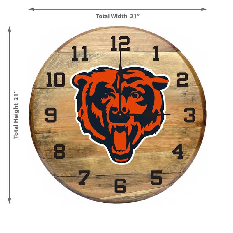 Imperial Chicago Bears Oak Barrel Clock Features:
