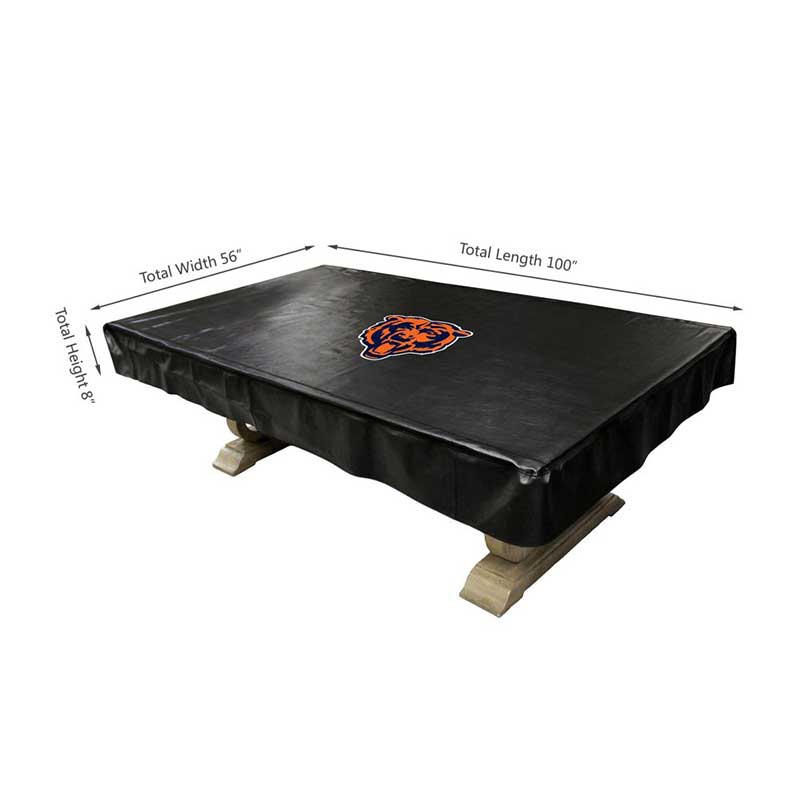 Show your team spirit even when you’re not playing. The NFL Official Licensed Billiard Table Cover is a great way to show your loyalty to your team while protecting your table from dirt. This high quality Naugahyde cover covers fits most standard 8-foot tables. Measures 56-inches wide x 100-inches long. Team logos are silk screened in the center using vibrant inks to make sure your team’s logo looks great for many years.
