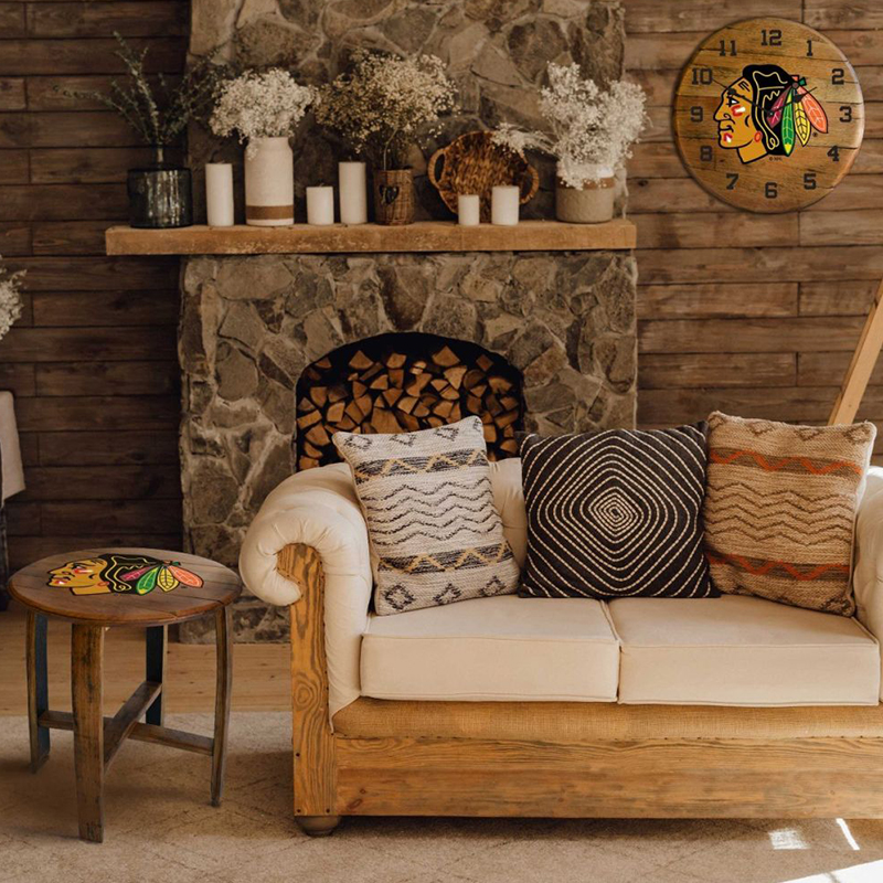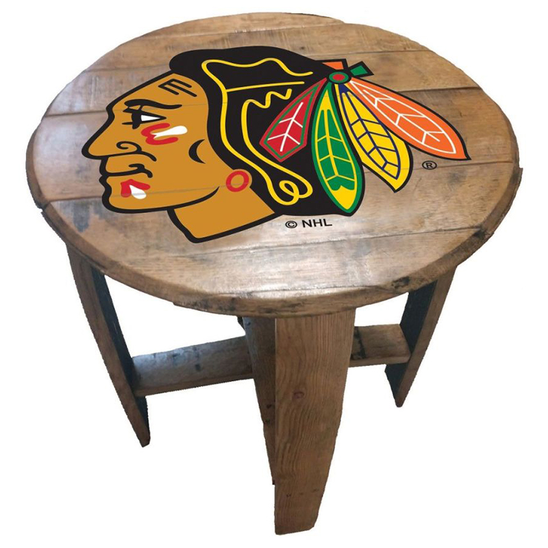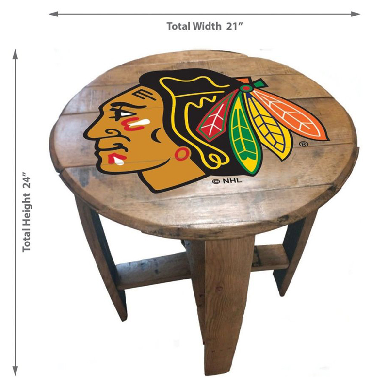 Imperial Chicago Blackhawks Oak Barrel End Table Features: