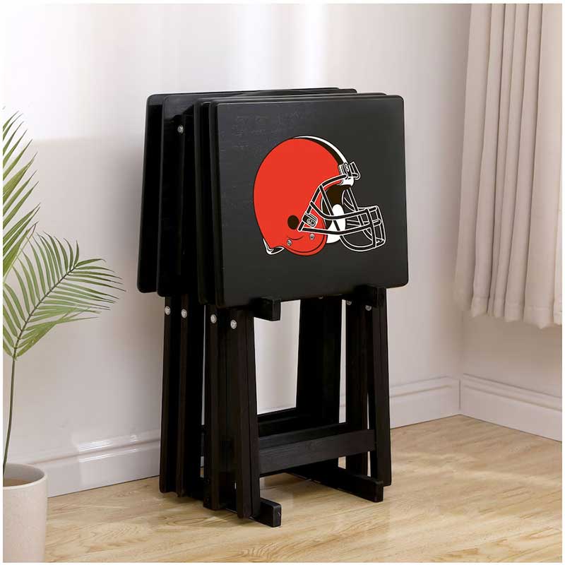 Show your team spirit with the NFL Official Licensed TV Snack Tray Set. The heavy duty trays and storage rack are made from select hardwoods that are finished with a durable, easy to clean surface so you don’t have to worry about stains. Team logos are silkscreened on the top of each tray. When you are done snacking, put the trays back into the storage rack to keep things neat and clean. Each tray measures 26″L x 19″W x 14.5″H. Set of 4 snack trays and storage rack are made to order. Made in China.