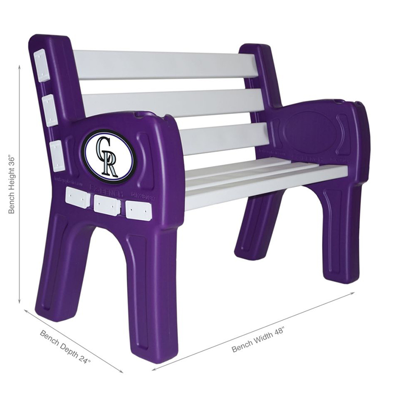 Support your favorite MLB team on your patio or in your yard with the MLB Officially Licensed Park Bench. Backs and seat are constructed of pine and covered with plastic sleeves for extra durability. The bench uses the primary and secondary colors of your favorite team. Made in the USA and ships from Iowa. 600 pound weight limit. Assembled dimensions: 48”L x 24”W x 36”H. 3 days lead time to ship.