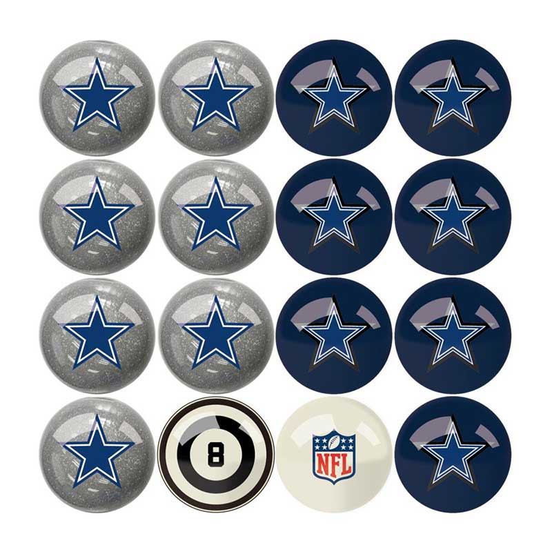 Take your Dallas Cowboys Billiard Balls to the pool table and enjoy a quick game of 8-ball or 9-ball. These balls have large team logos and numbers and really pop! Balls are regulation size and weight and made of a polyester resin that resists chipping and cracking. Time to get you a set!