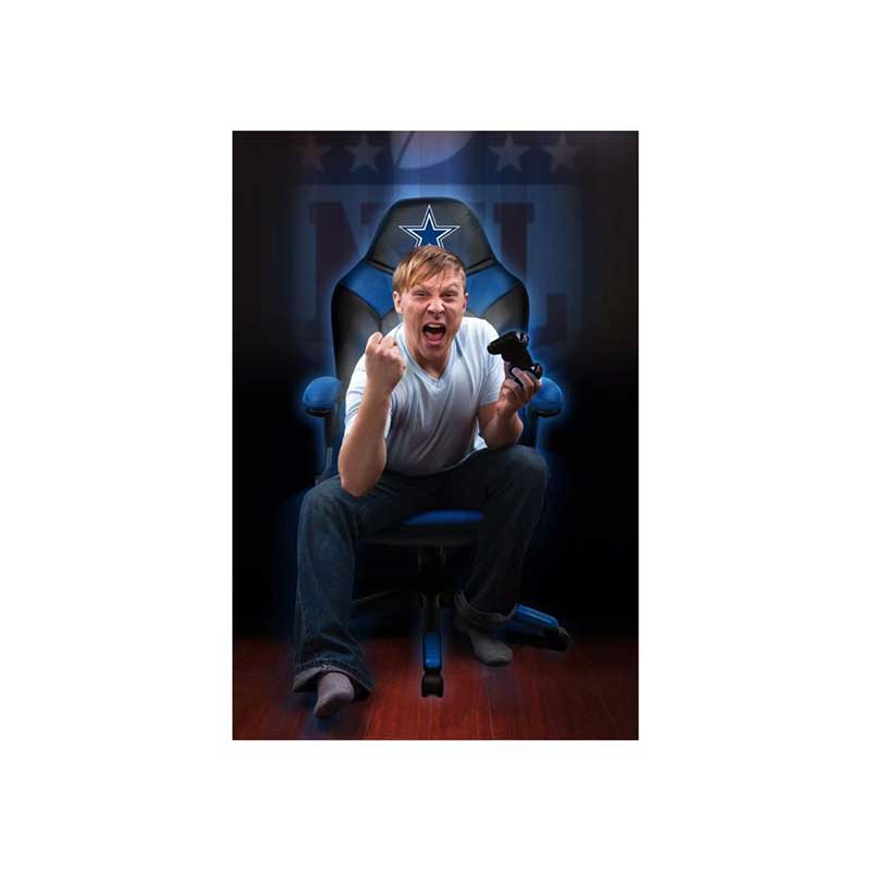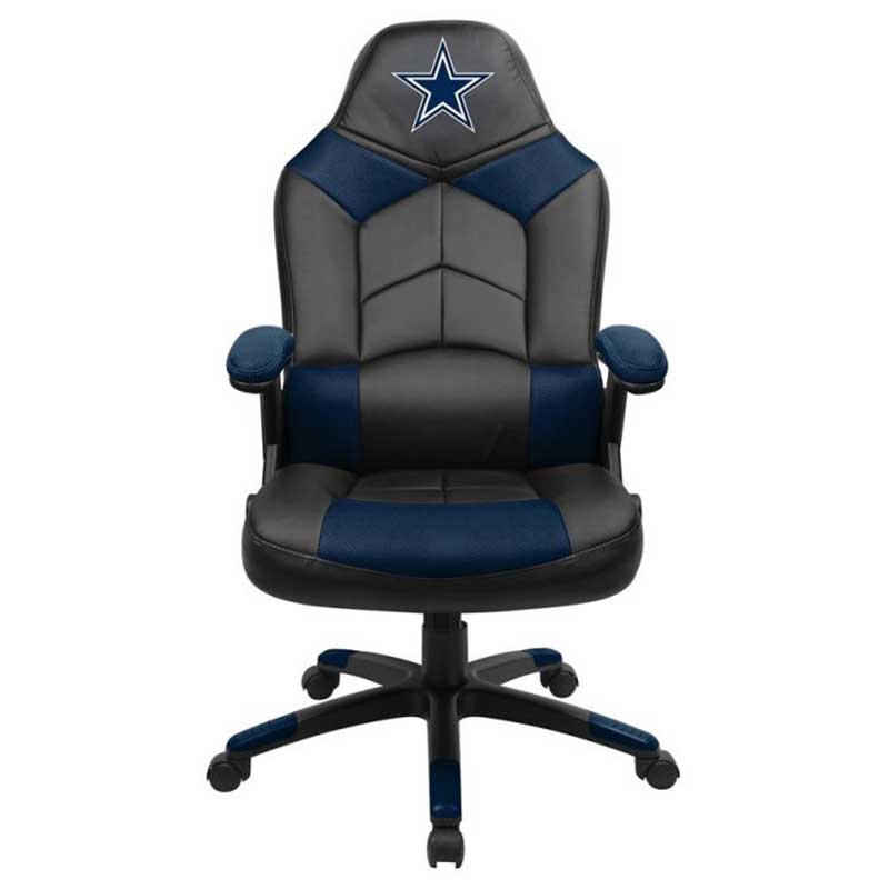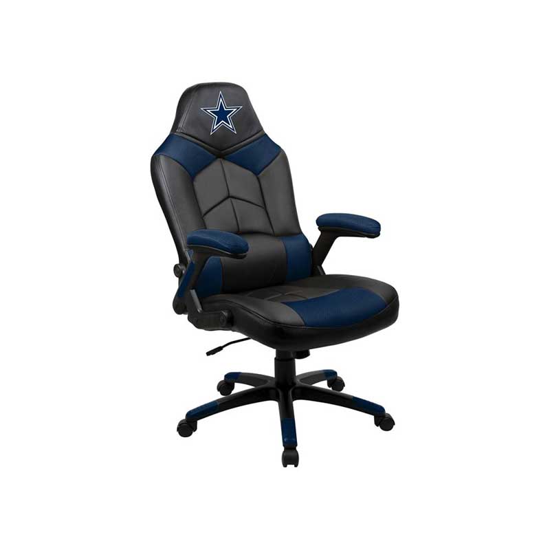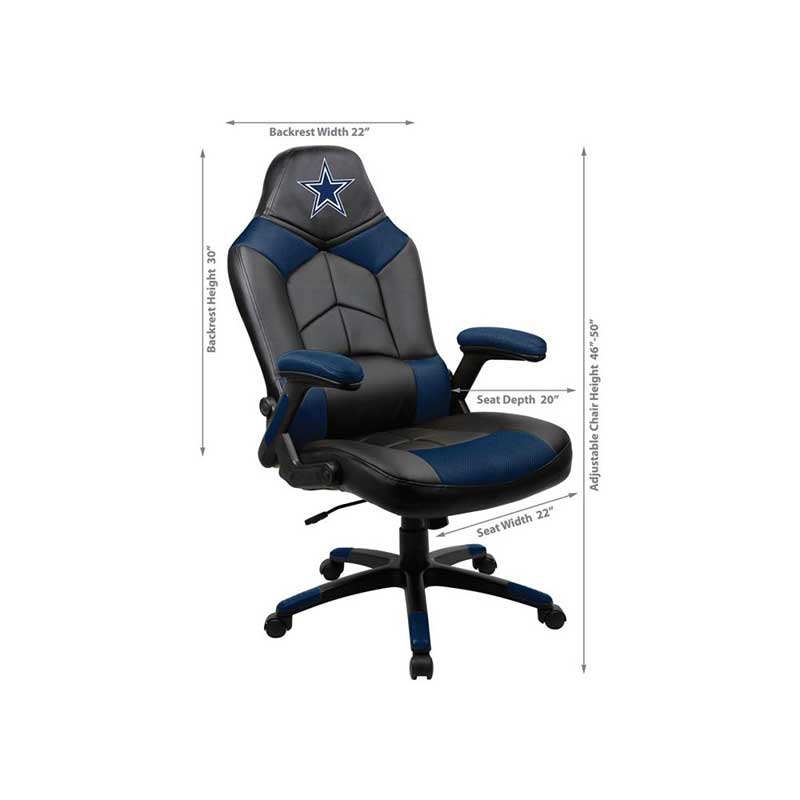 Support your favorite team while playing your favorite online game, listening to your favorite music, or just watching TV in your Dallas Cowboys Oversized Gaming Chair! This chair has an oversized seat and back for extra comfort. Embroidered team logo on the headrest. Memory foam in the seat and padded armrests make this the most comfortable gaming chair you can buy. Unique pouch allows you to keep gaming accessories handy and protected. 13-25/32″ black powder coated nylon base and butterfly tilt mechanism. 325-pound weight capacity. Product dimensions: 45 ¾ x 26 x 49 ½; weighs 37 pounds. Boxed dimensions: 32.5 x 13.75 x 25.75. Made in China. Ships small parcel from California. Patent pending.