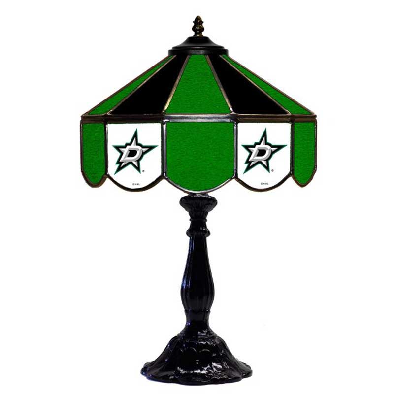 Dress up any room in the house with this officially licensed Tiffany-style Dallas Stars 21″ Glass Table Lamp. Real hand-cut stained glass with team colors and logos looks great in any game room. Comes with everything you need – just add one 60 watt light bulb (not included). Fully wired with 1 UL. Approved high-quality light socket. Heavy-duty solid cast metal base. 6 of cord with polarized plug. This product is officially licensed by the NHL and is made in the USA.