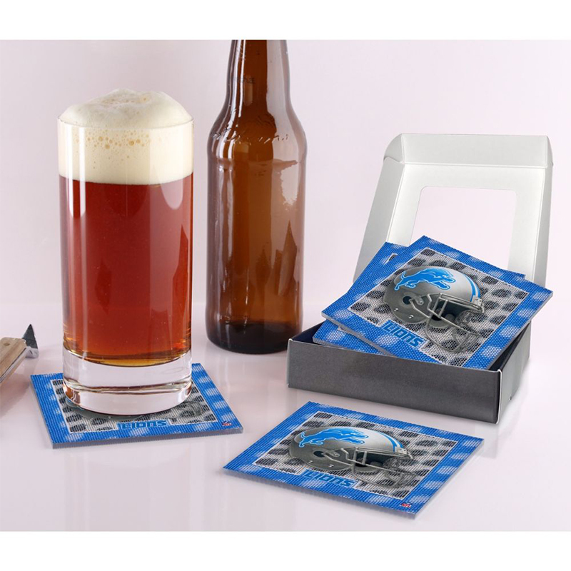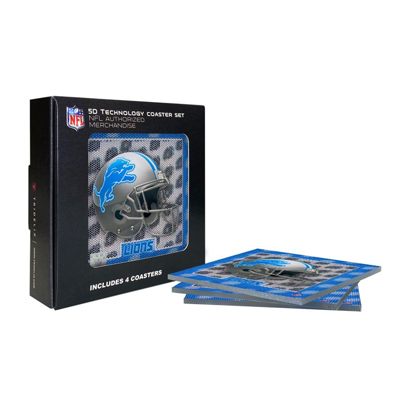 Our NFL Detroit Lions 5D floating helmet coaster sets are exactly what you need to proudly display your team’s colors on your nightstand, living room coffee table, home office, man cave, or anywhere that needs some spicing up! These Detroit Lions coasters come 4 to a set and are sure to be the talk of your friends when you gather to watch the game this year! Treat yourself to something special this season! Match this up with the NFL Cel Phone Charger, Desk Topper, and Framed Wall Art to complete the assortment!