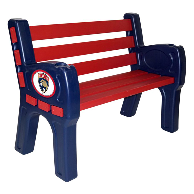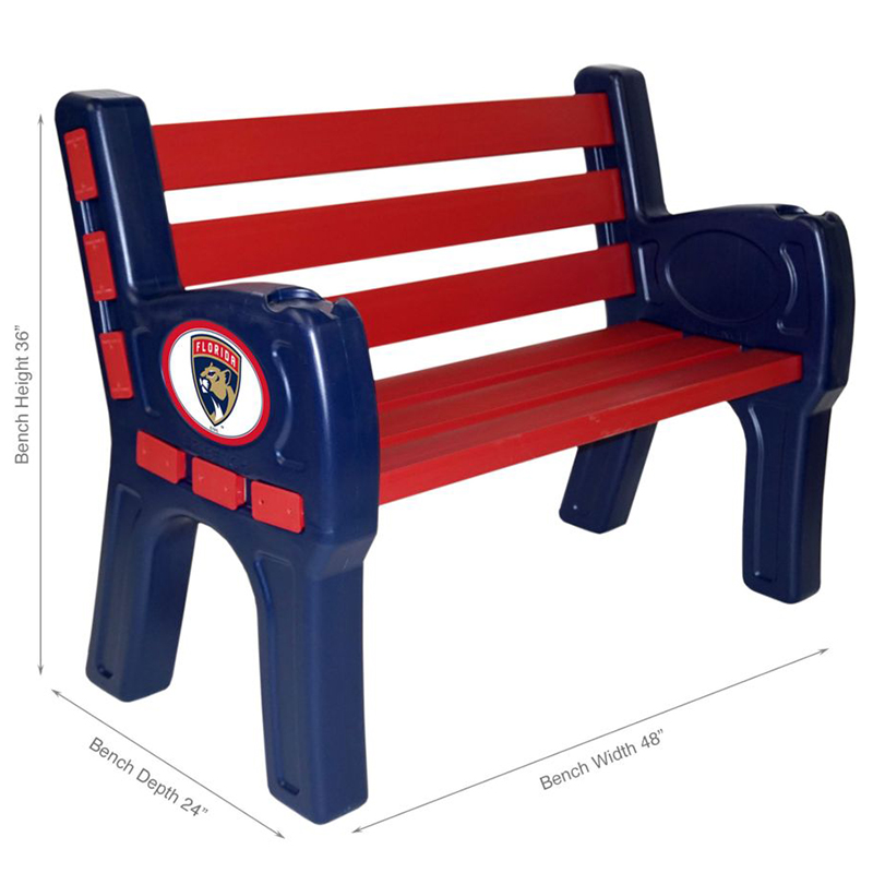 Support your favorite NHL team on your patio or in your yard with the NHL Officially Licensed Park Bench. Backs and seat are constructed of pine and covered with plastic sleeves for extra durability. The bench uses the primary and secondary colors of your favorite team. Made in the USA and ships from Iowa. 600 pound weight limit. Assembled dimensions: 48”L x 24”W x 36”H. 3 days lead time to ship.