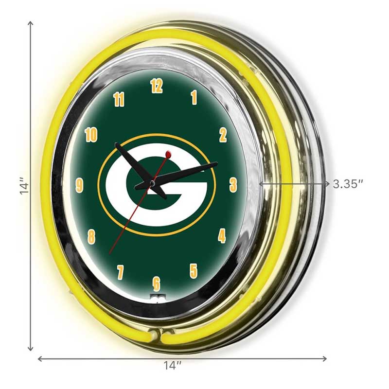 Imperial Green Bay Packers 14″ Neon Clock Features: