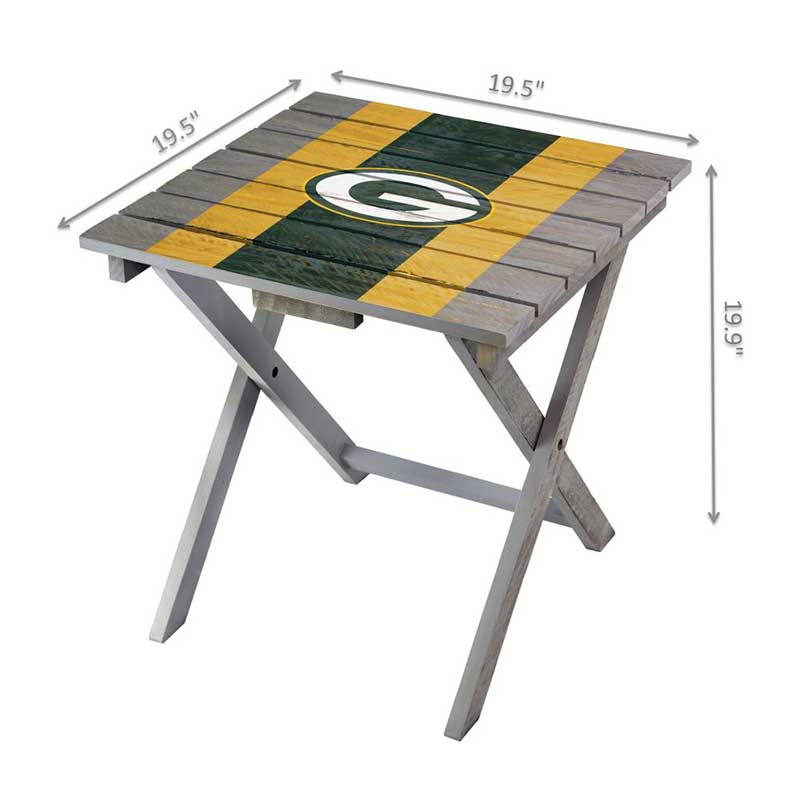 Add style and convenience to your patio or backyard with this wooden Green Bay Packers folding adirondack table. Made of solid, high quality pine wood, this table features your favorite team’s logo and folds away for easy storage and transportation. With its classic slatted design, this table looks great on its own or as an accent piece next to your Adirondack chair. This product is officially licensed by the NFL.