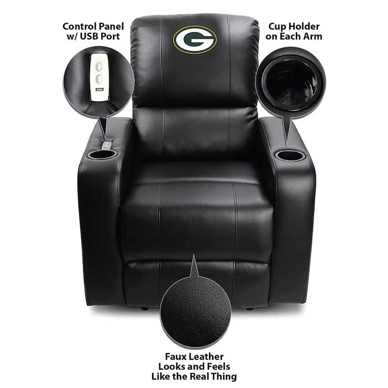 Imperial Green Bay Packers Power Theater Recliner Features: