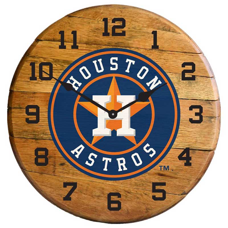 Imperial Houston Astros Oak Barrel Clock Features: