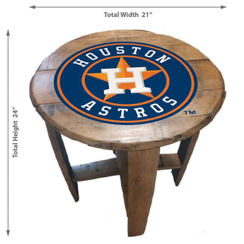 Liven up your living room or fan cave with this officially licensed Custom Made Oak Barrel Table from Imperial! Made from an authentic Kentucky oak charred whiskey barrel, this rustic-style table is one of a kind and looks great in any room. The team logo is applied by injecting UV resistant ink into the oak and then sealing. The table measures 21 inches in diameter and is 24 inches high. This product is officially licensed by the MLB and is made in the USA.