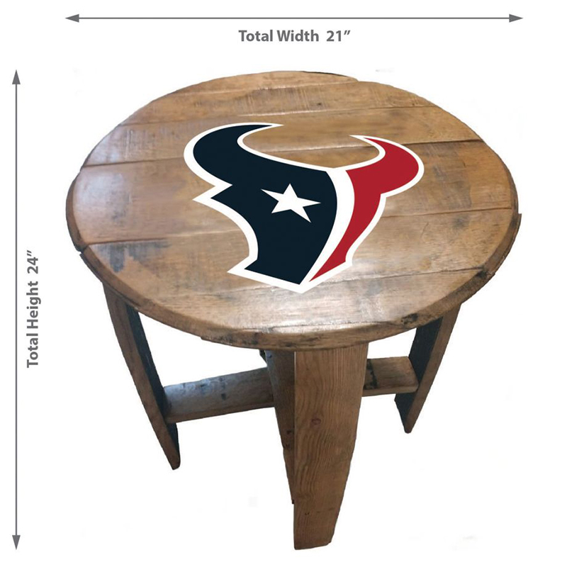 Show your support for the Texans with this Imperial Houston Texans Oak Barrel End Table. Featuring the Texans logo on its top, this table is a bold statement of team pride. The oak barrel construction ensures strength and durability, while the natural wood finish complements any home décor. The table is perfect for holding snacks during games or showcasing Texans memorabilia. The lower shelf offers additional storage, making it a practical and stylish piece for any Texans fan.