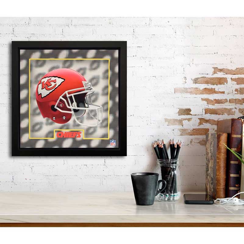 A must have item for true Kansas City Chiefs fan. This 12″ x 12″ framed piece is a perfect addition for your man cave, bedroom, office, bar etc. This revolutionary product uses proprietary technology to create a deceptively deep, three-dimensional effect on completely flat surfaces. A perfect gift to the fan that you thought had everything. Also available in Coaster Sets, Cell Phone Stands and Desk Toppers.
