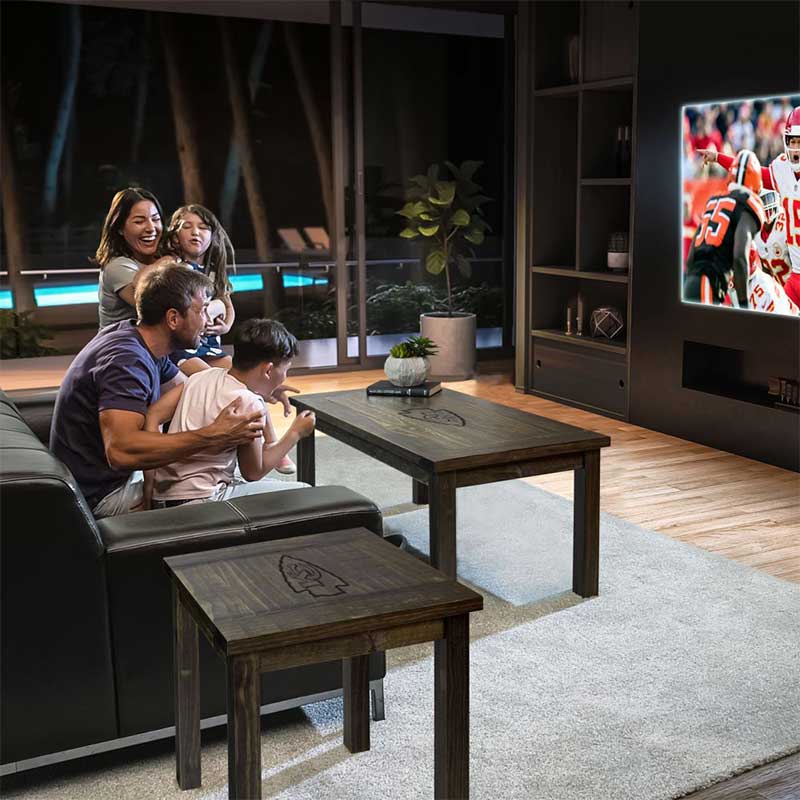 This Kansas City Chiefs Reclaimed Coffee Table features your favorite team’s logo to bring team spirit to any living space. Made of solid pine wood. The table looks great holding drinks and snacks in your fan cave or in your living room. Pair this with a team side table to complete your room! This product is officially licensed by the NFL.