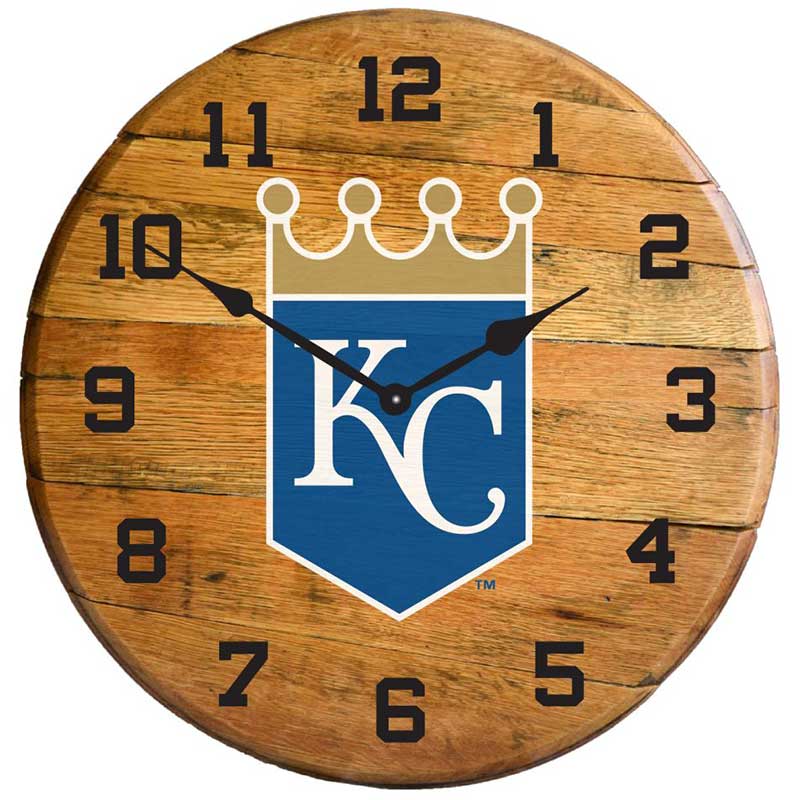 Imperial Kansas City Royals Oak Barrel Clock Features: