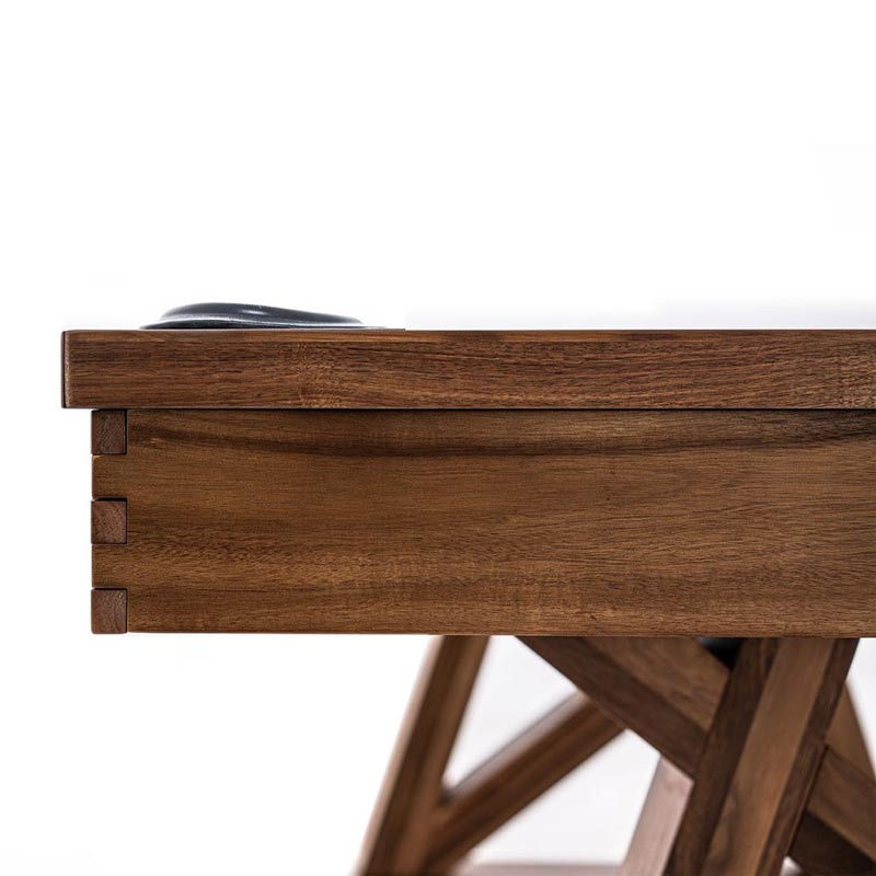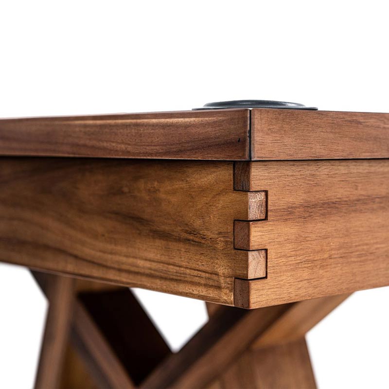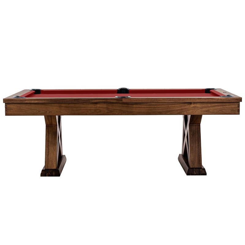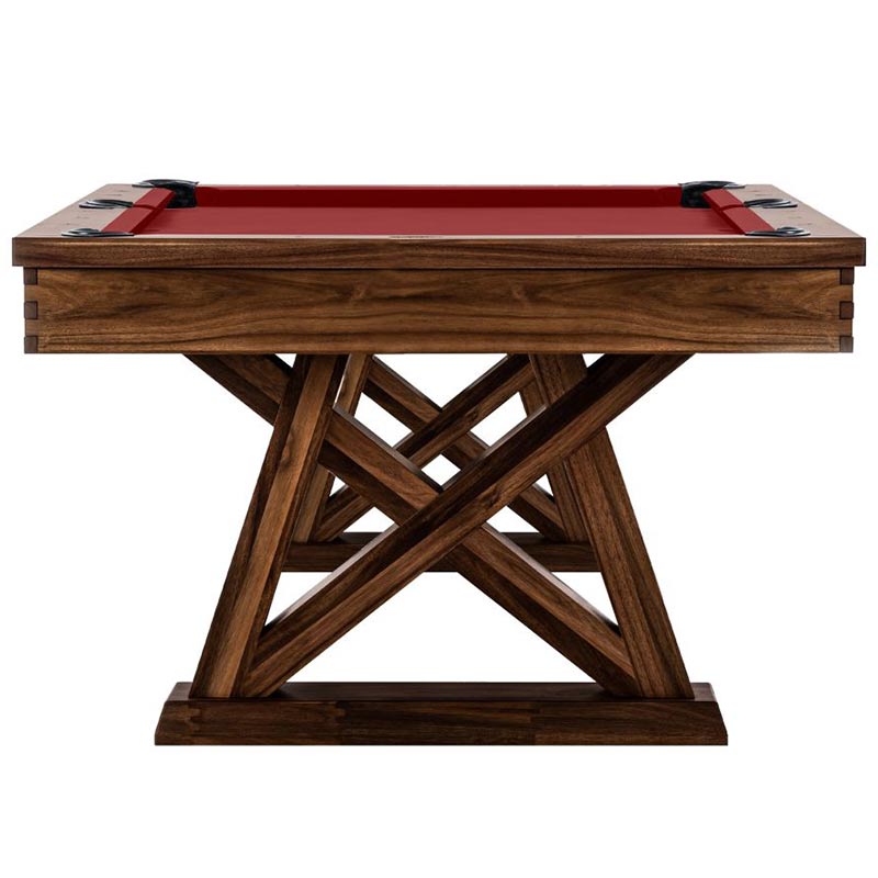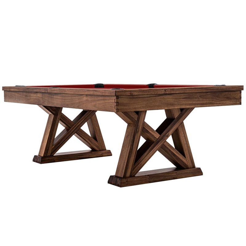 The Laredo pool table is made of solid wood and features unique design elements that give it an original look, perfect for a modern farmhouse living space. The crossbeam leg design and interlocking corner detail provides that rustic element as well as stability. All Imperial pool tables are skillfully crafted and designed by billiard experts and enthusiasts.