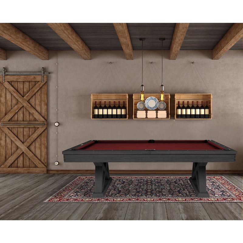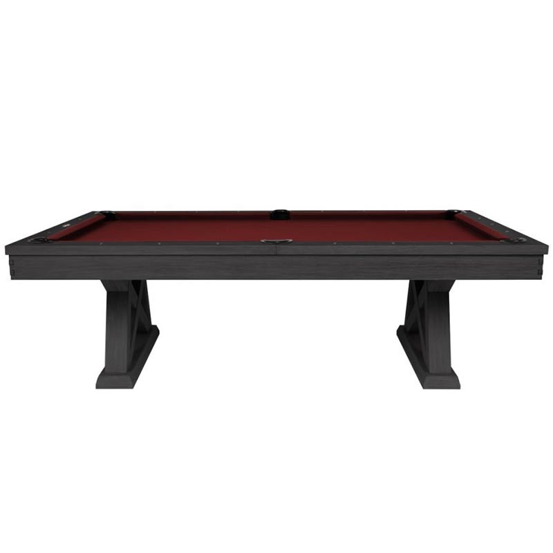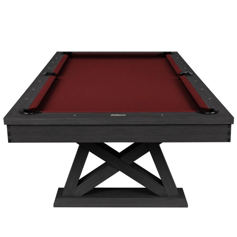 The Laredo pool table is made of solid wood and features unique design elements that give it an original look, perfect for a modern farmhouse living space. The crossbeam leg design and interlocking corner detail provide that rustic element as well as stability. All Imperial pool tables are skillfully crafted and designed by billiard experts and enthusiasts.
