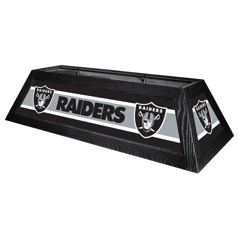 Your Las Vegas Raiders 42″ Billiard Lamp is built to last with a bright backlit design digitally printed on shatter resistant acrylic panels. The solid black hardwood frame, will both compliment your billiard table as well as illuminate it with up to 400w of light for the playing surface. Everything is included to hardwire this beauty above your favorite pool table.