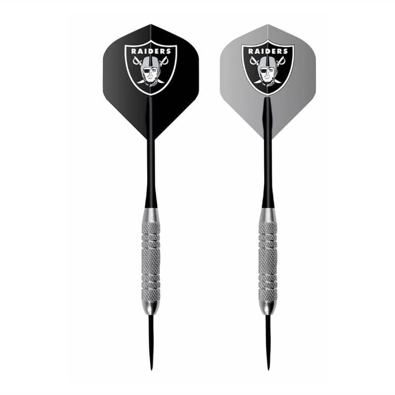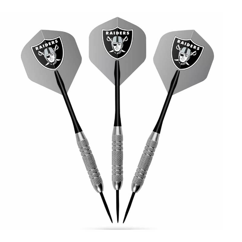 The Las Vegas Raiders Fans Choice Dart Set is designed for optimum and accurate play. Precision nickel plated darts with durable aluminum shafts will certainly improve your game and your favorite team flights are sure to be a bullseye among all your friends enjoyment!