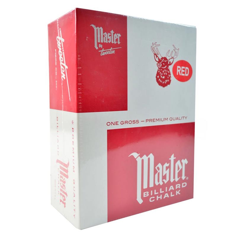 Master chalk is the most popular chalk on the market. Master chalk coats pool cue tips smoothly and evenly. Master chalk will not cake or flake like inferior imported chalk. Made in the U.S.A. Box of 144 cubes (1 gross).