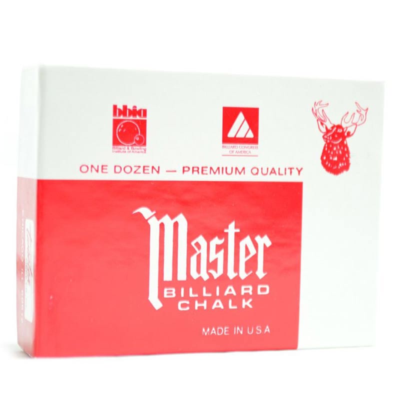 Master chalk is the most popular chalk on the market. Master chalk coats pool cue tips smoothly and evenly. Master chalk will not cake or flake like inferior imported chalk. Made in the U.S.A. Box of 12 cubes (1 dozen).