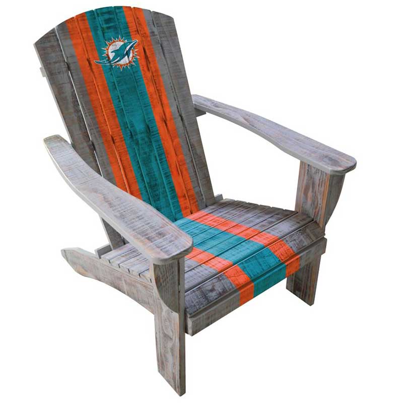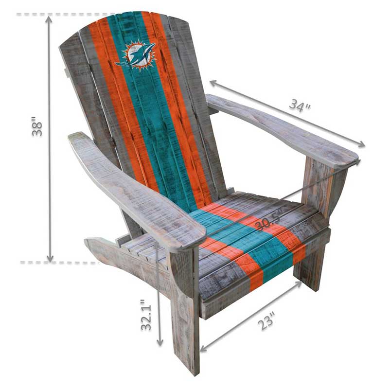 Time to show your favorite team as you enjoy the great outdoors on your new NFL Officially Licensed distressed wood Adirondack chair. The chair has the team colors painted stripes on back and seat. Large logo on the back of the chair. Assembled dimensions: 37.5” x 34” x 30.5′ ,weight 32 pounds. Ships small parcel. Made in China. Ships from Texas.