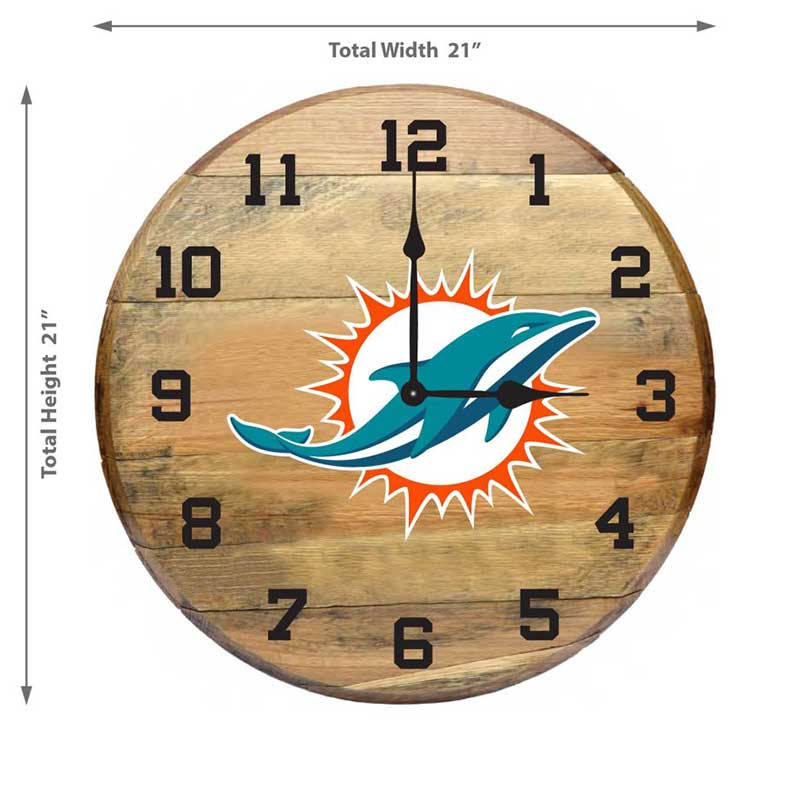 Imperial Miami Dolphins Oak Barrel Clock Features: