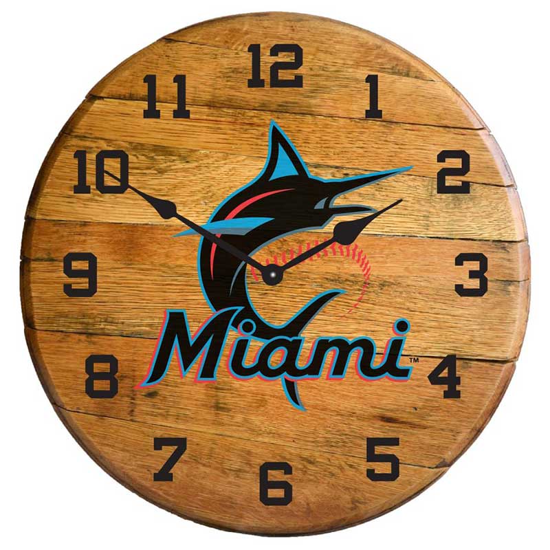 Imperial Miami Marlins Oak Barrel Clock Features: