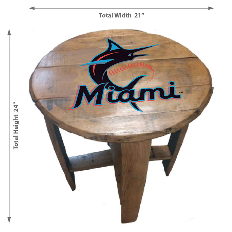 Imperial Miami Marlins Oak Barrel End Table Features: