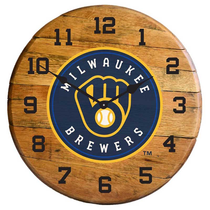 Imperial Milwaukee Brewers Oak Barrel Clock Features: