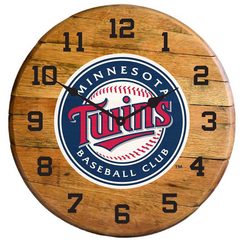 Imperial Minnesota Twins Oak Barrel Clock Features: