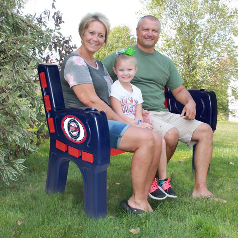 Support your favorite MLB team on your patio or in your yard with the MLB Officially Licensed Park Bench. Backs and seat are constructed of pine and covered with plastic sleeves for extra durability. The bench uses the primary and secondary colors of your favorite team. Made in the USA and ships from Iowa. 600 pound weight limit. Assembled dimensions: 48”L x 24”W x 36”H. 3 days lead time to ship.