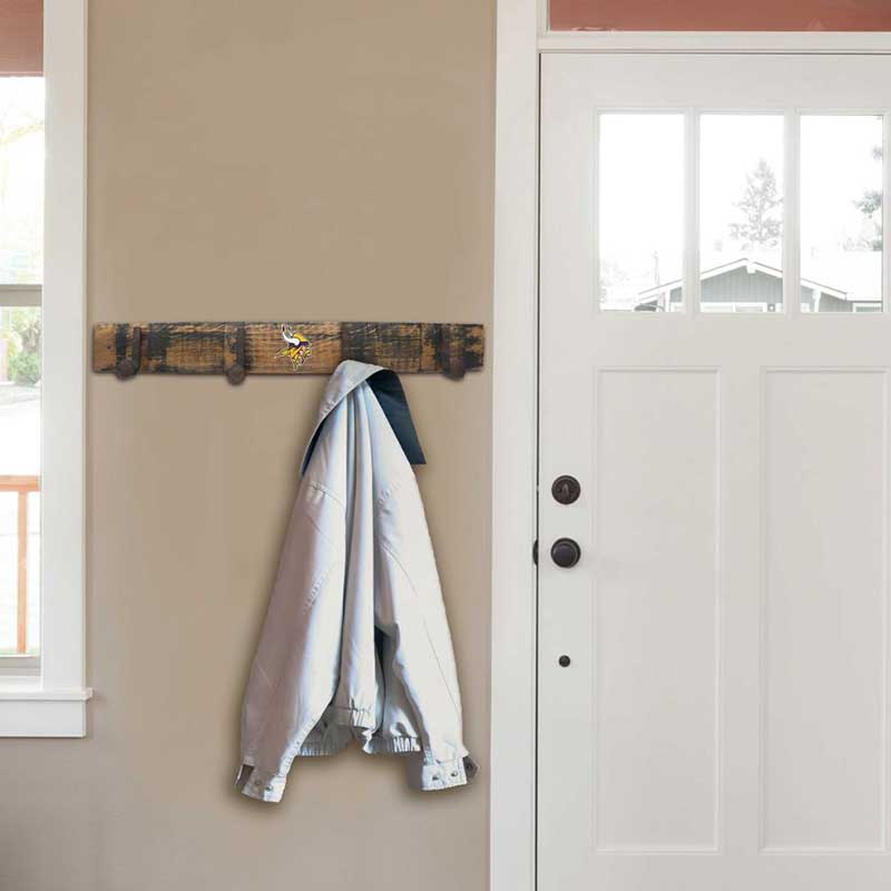 Showcase your Vikings pride with the Minnesota Vikings Oak Barrel Coat Rack. Made from solid oak, this durable coat rack features the iconic Vikings logo, ideal for fans who want to express their team spirit. Its multiple hooks provide ample space for outerwear and sports gear, making it both a practical and stylish addition to your home décor.