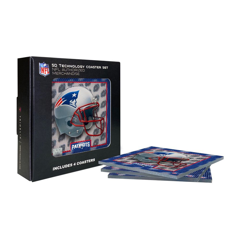 Our NFL New England Patriots 5D floating helmet coaster sets are exactly what you need to proudly display your team’s colors on your nightstand, living room coffee table, home office, man cave, or anywhere that needs some spicing up! These New England Patriots coasters come 4 to a set and are sure to be the talk of your friends when you gather to watch the game this year! Treat yourself to something special this season! Match this up with the NFL Cel Phone Charger, Desk Topper, and Framed Wall Art to complete the assortment!