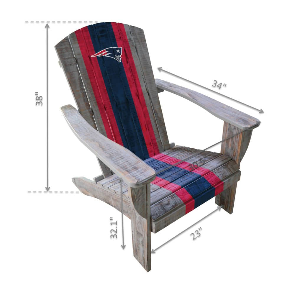 Time to show your favorite team as you enjoy the great outdoors on your new NFL Officially Licensed distressed wood Adirondack chair. The chair has the team colors painted stripes on back and seat. Large logo on the back of the chair. Assembled dimensions: 37.5”L x 34”W x 30.5”H; weight 32 pounds. Ships small parcel. Made in China. Ships from Texas.